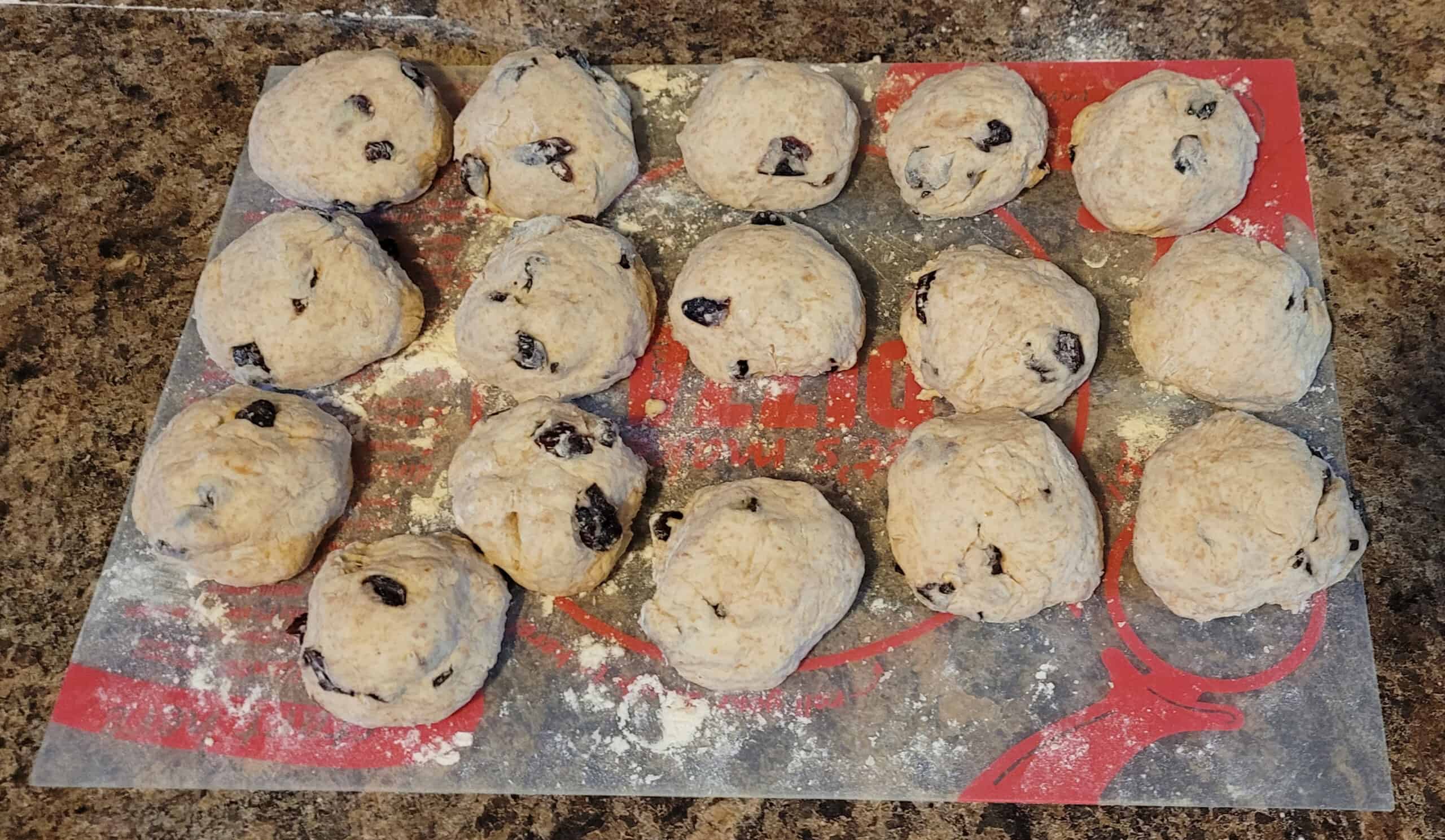 I use plain Greek yogurt (2% fat) and add about 1 cup of dried cranberries and 3 tsp cinnamon. I divide the dough into 16 (the original recipe says 10), and leave them fairly thick when I roll them out, a little less than half an inch thick. I was able to cook them on the flat-top, which made the cooking stage much more manageable for me.